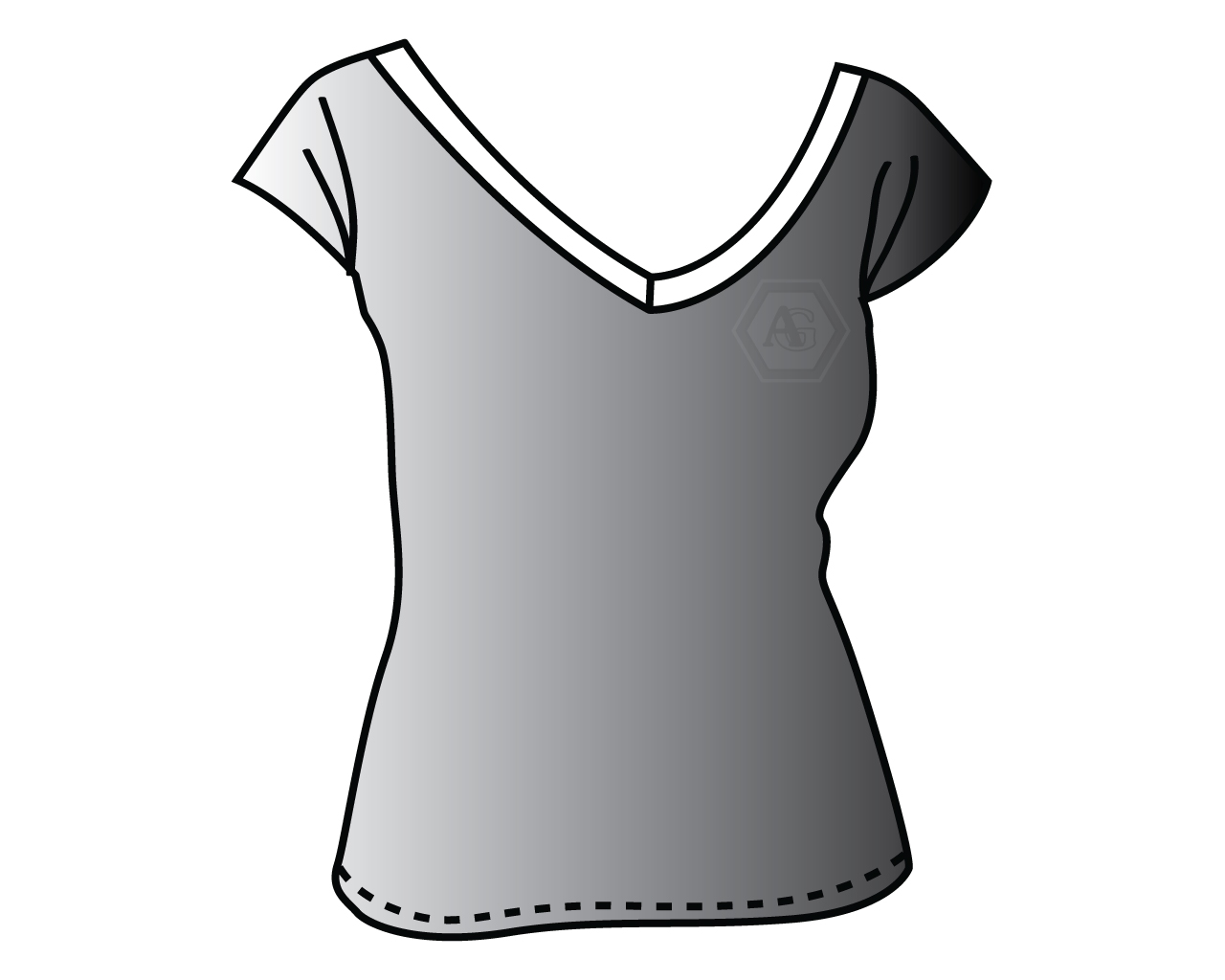 Women's V-neck rolled & raw-cut finished T-Shirt